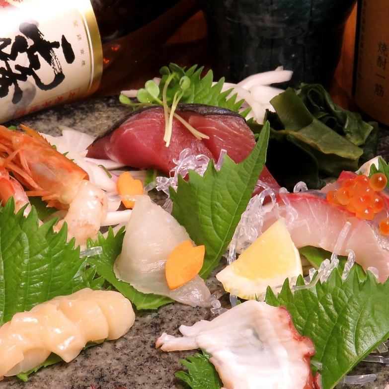 海鮮はもちろん、野菜も新鮮な食材を使用しております。中でも季節のお魚は旬のお刺身をご用意しております。お造りをはじめ、焼き物や揚げ物、煮物、お寿司など、おつまみメニューも豊富にご提供させて頂きます。